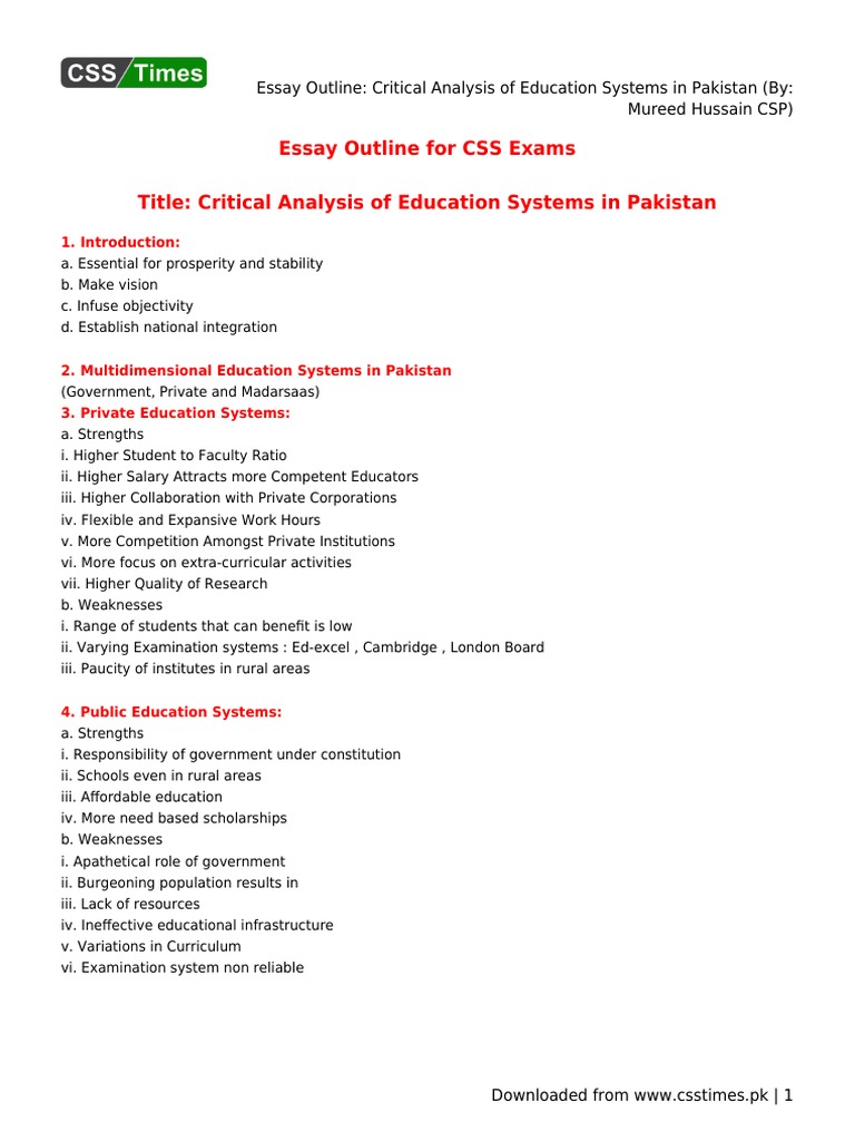 Essay Outline- Critical Analysis of Education Systems in Pakistan …