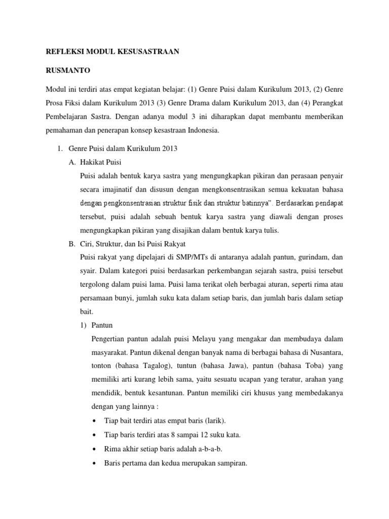 Materi Sastra dalam Kurikulum 2013 | Badan Pengembangan dan …