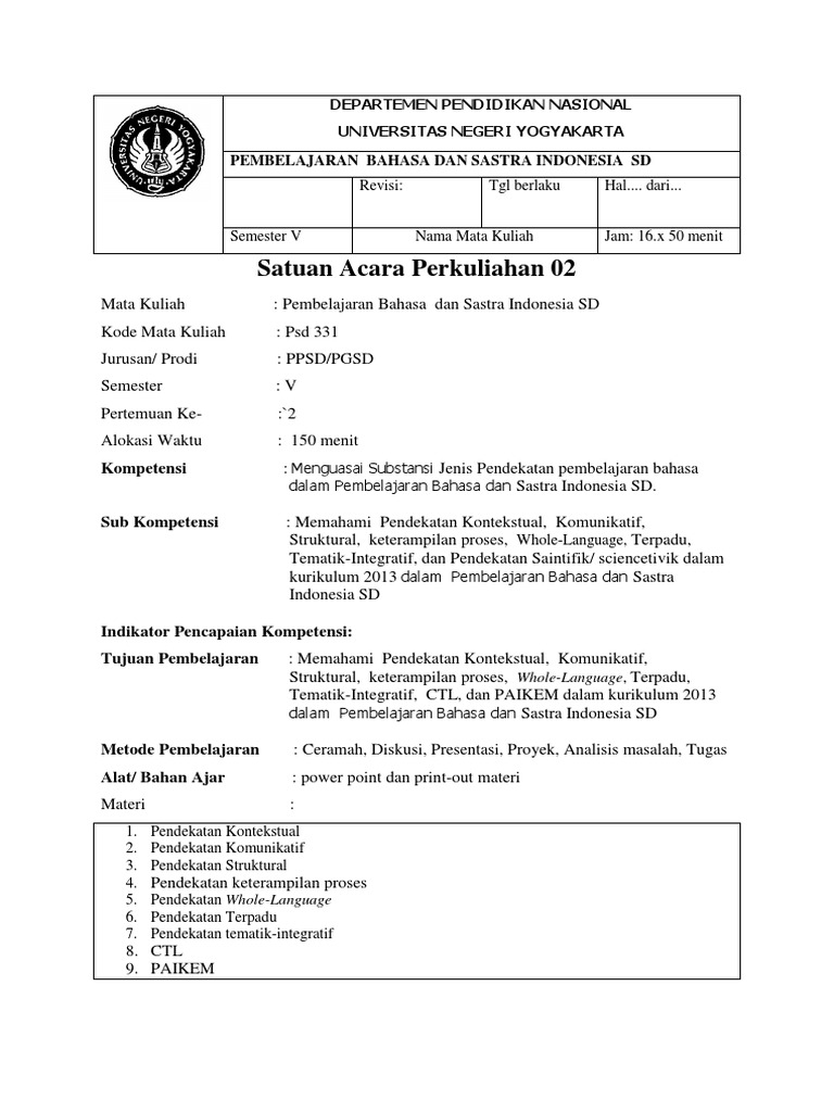 Pembelajaran Bahasa Dan Sastra Indonesia SD_SAP 2