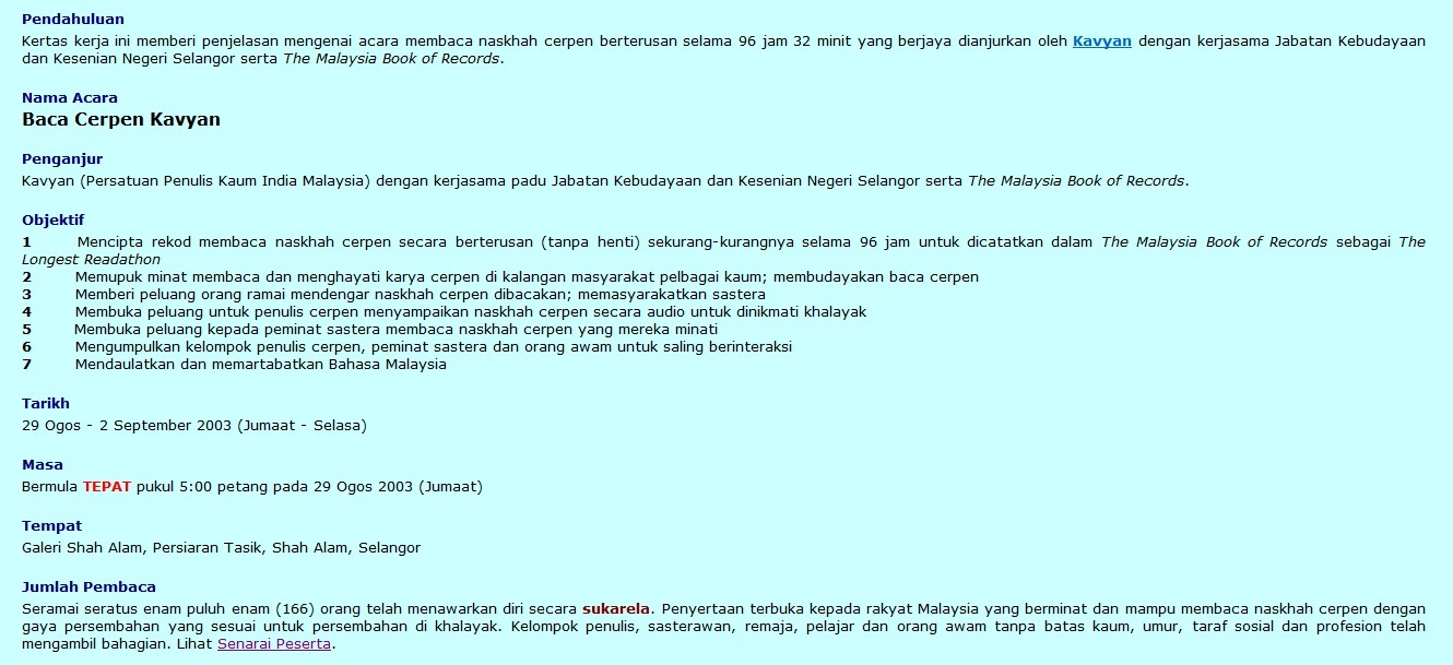 Bahan Arkib dan Rujukan: Kertas Kerja Baca Cerpen Kavyan