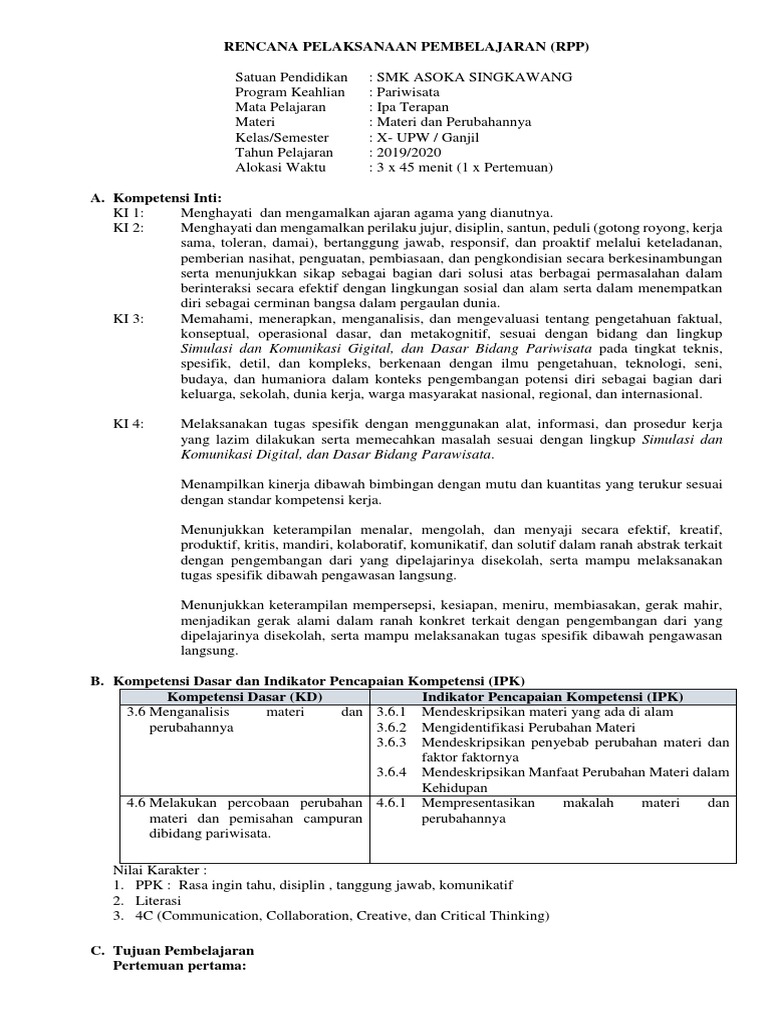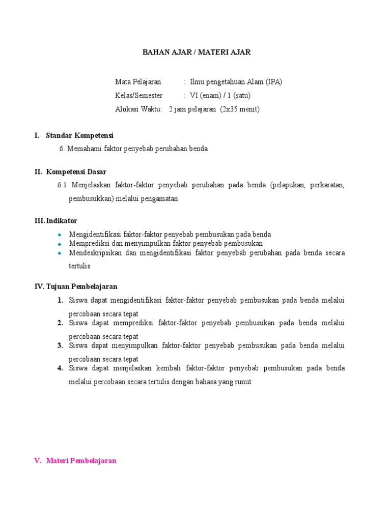 RENCANA PELAKSANAAN PEMBELAJARAN (RPP) - .G. Materi Esensial . Faktor penyebab perubahan benda. … - [PDF Document]