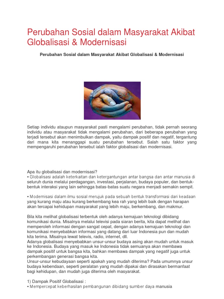 Perubahan Sosial sebagai Dampak Globalisasi, Positif dan Negatif