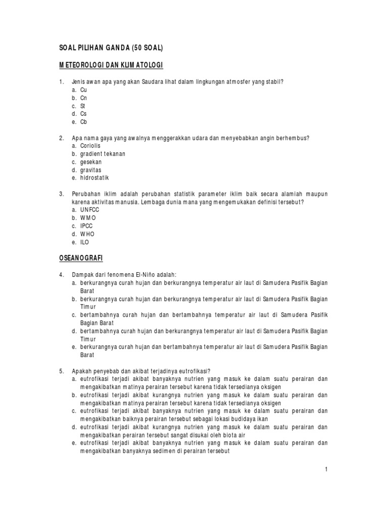 DOC) SOAL PILIHAN GANDA (50 SOAL) METEOROLOGI | eddy tarantula …
