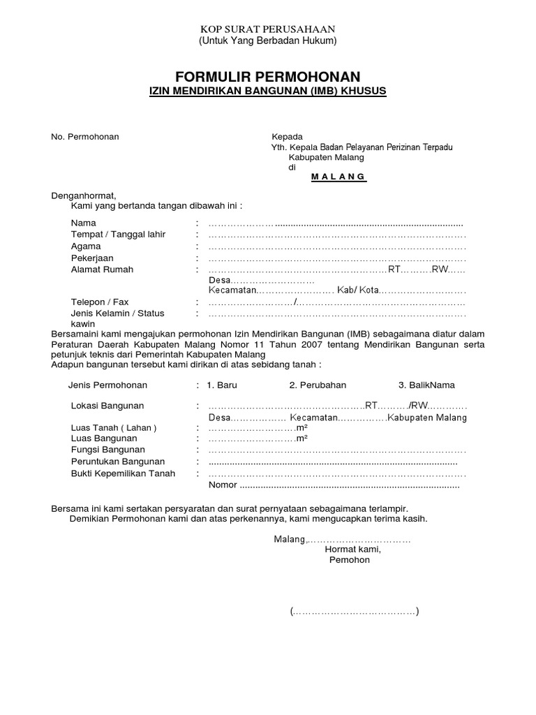 formulir permohonan izin mendirikan bangunan gedung (imb)