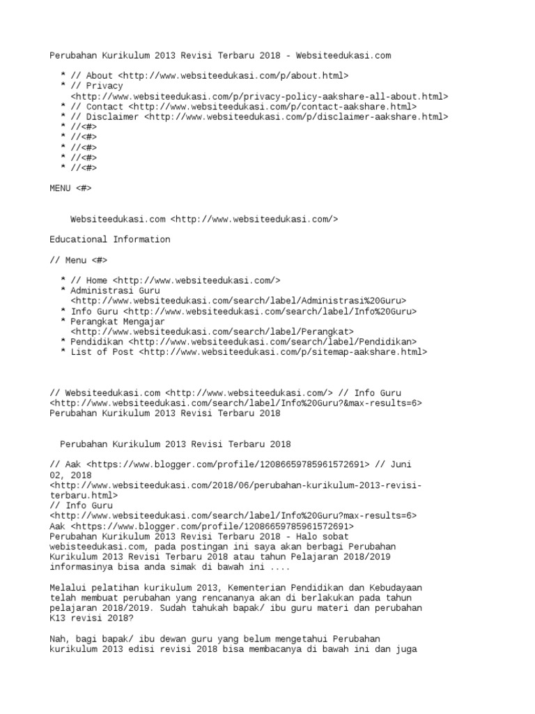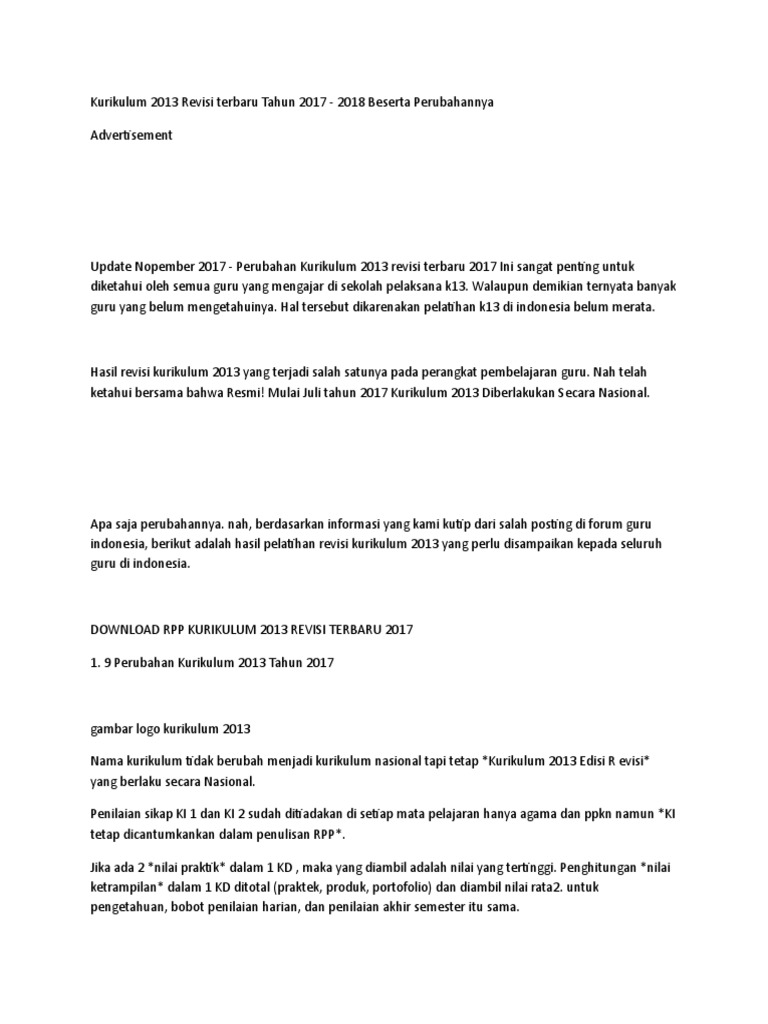 Perubahan Kurikulum 2013 Revisi 2018 Pdf