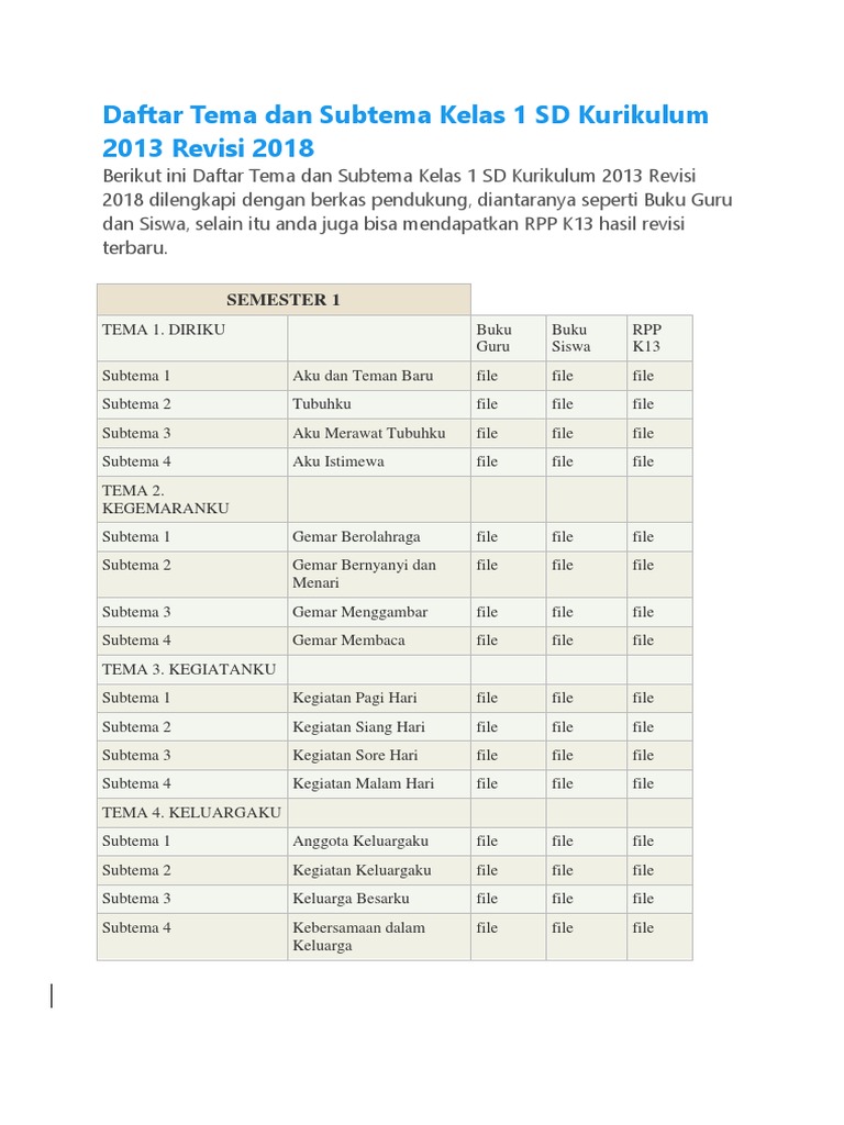 Rangkuman Kurikulum 2013 Edisi Revisi (K13) Sekolah Dasar …