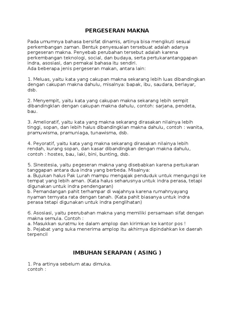 PDF) Tipe, Proses, dan Penyebab Perubahan Makna dalam Bahasa Indonesia | yuniarto hendy - Academia.edu