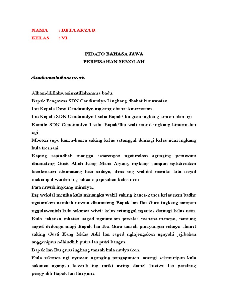 Contoh Pidato Bahasa Jawa Tentang Perpisahan Kelas 6 | Contoh Soal Dan Materi Pelajaran 8
