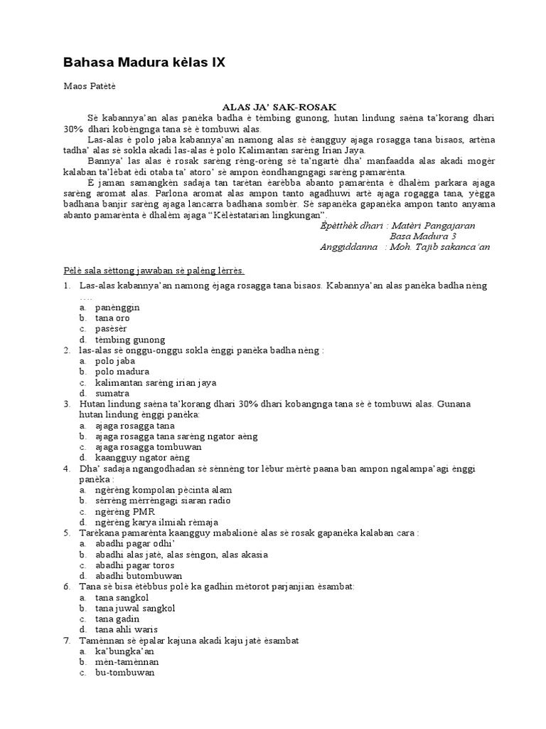 MATA PELAJARAN BAHASA MADURA UNTUK .Web viewMengungkapkan pikiran …