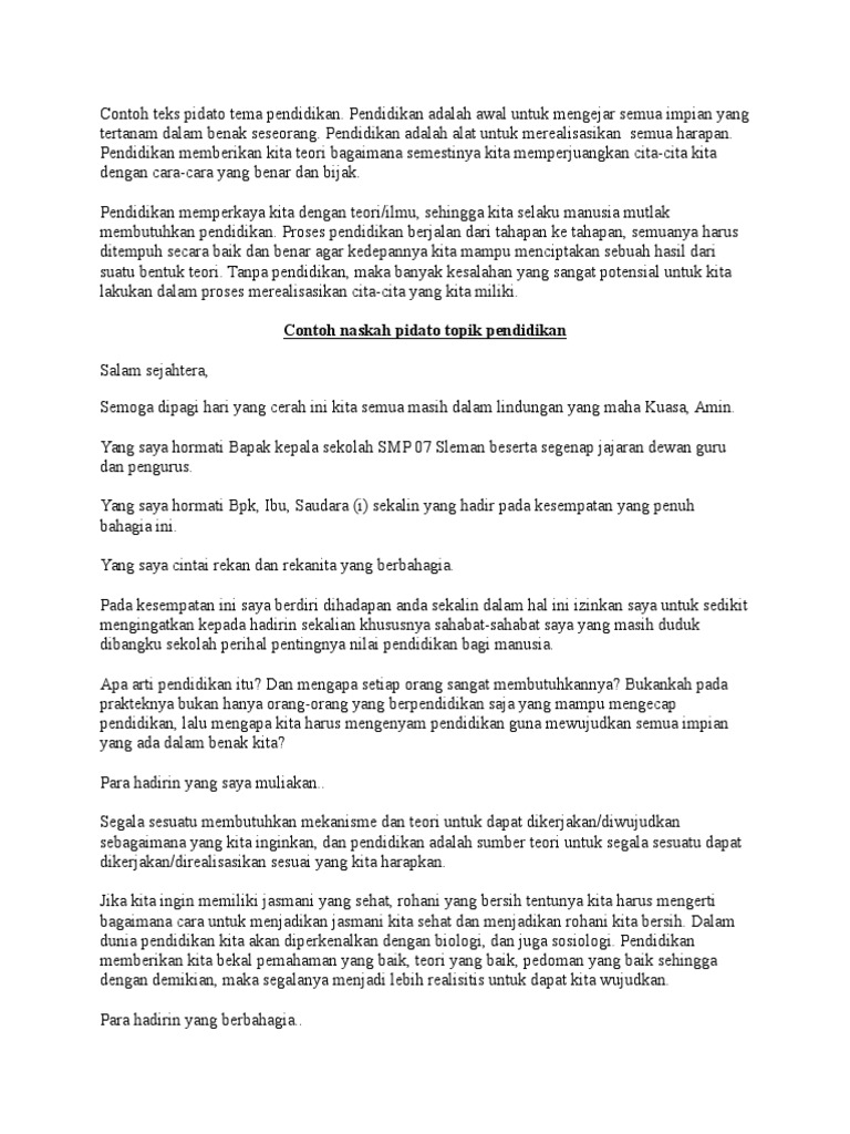 DOC) Contoh Pidato Singkat Pendidikan | indah mokobombang …