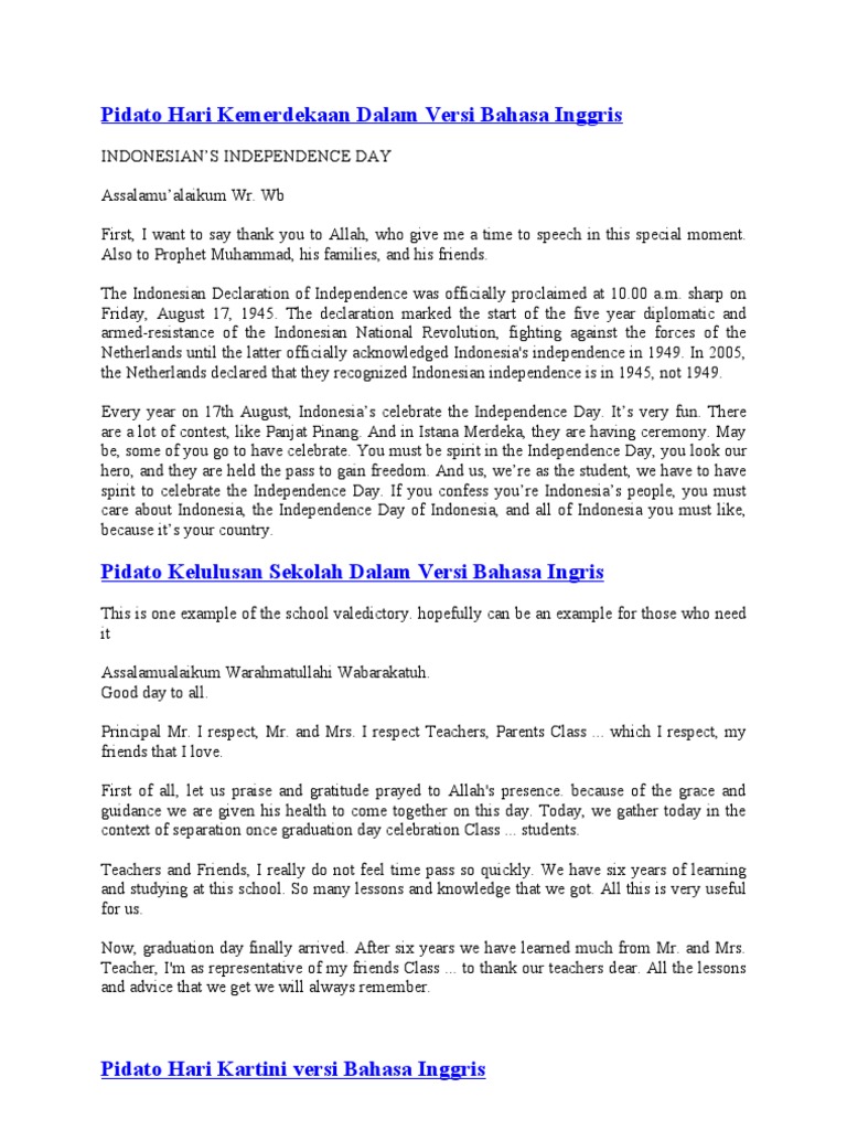 Contoh Naskah Pidato Hari Kemerdekaan Dalam Versi Bahasa Inggris - [DOCX Document]