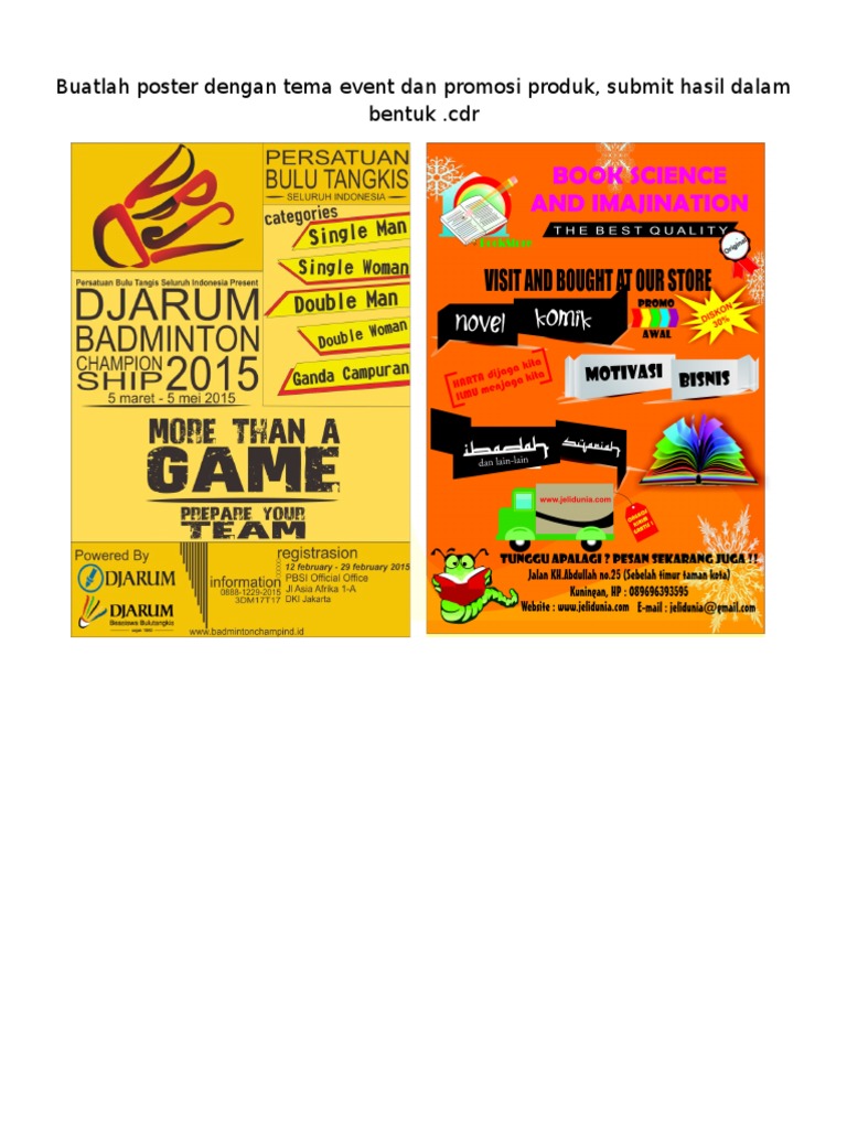 Buatlah poster dengan tema event dan promosi produk, submit hasil …