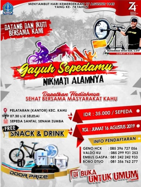 Menyambut HUT RI Ke-74, Camat Kahu Gelar Kegiatan Sepeda Santai - Kareba Panrita