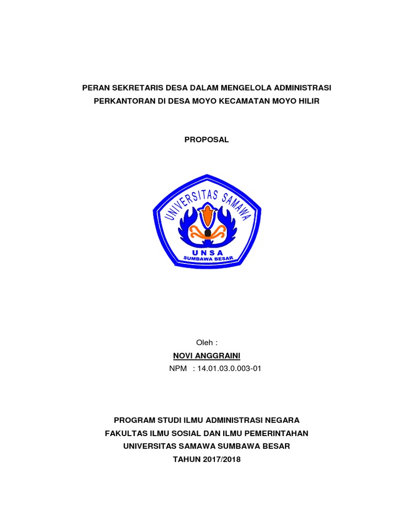 Peran Sekretaris Desa Dalam Mengelola Administrasi Perkantoran Di Desa Moyo Kecamatan Moyo Hilir Copy