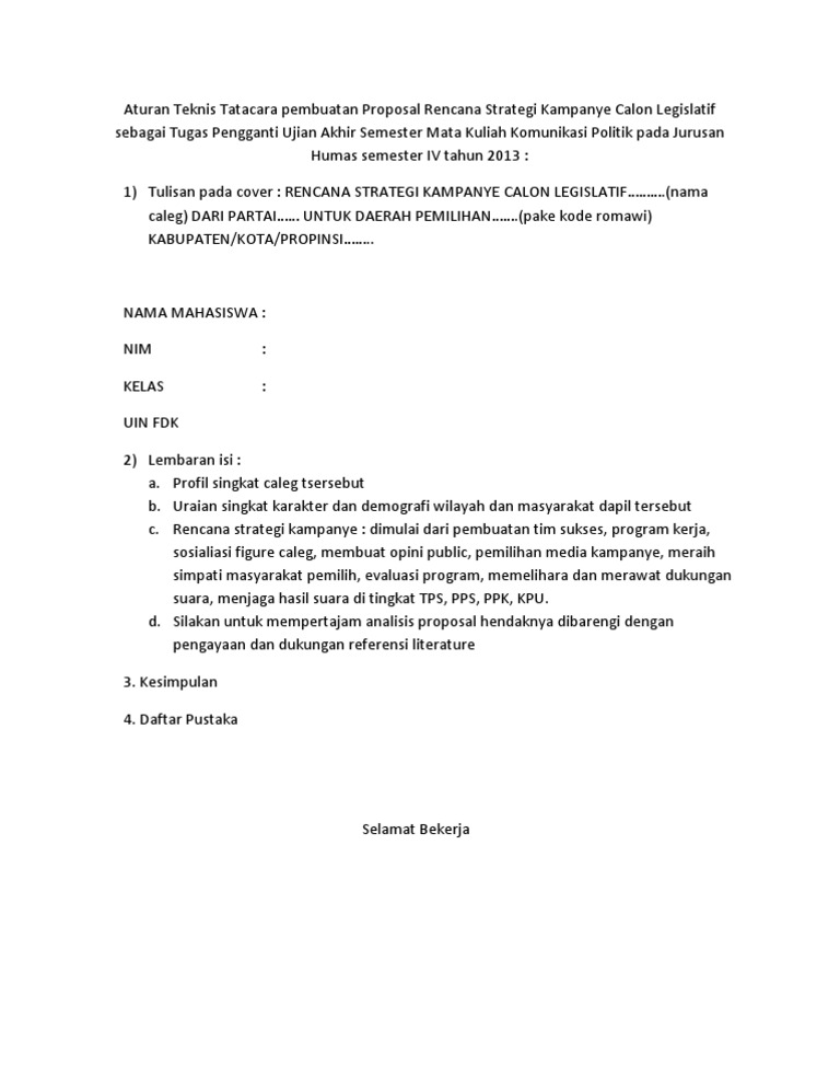 Tatacara Pembuatan Proposal Rencana Strategi Kampanye Caleg