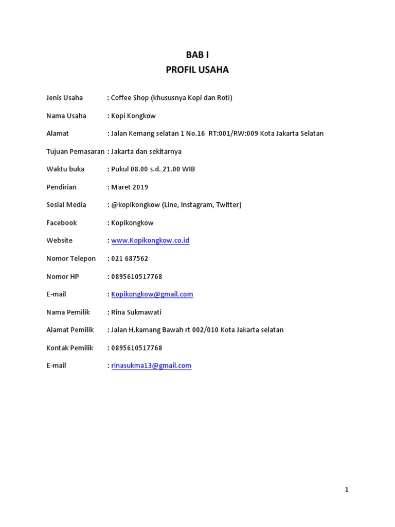 Contoh Proposal Bisnis Kedai Kopi - PDF Free Download