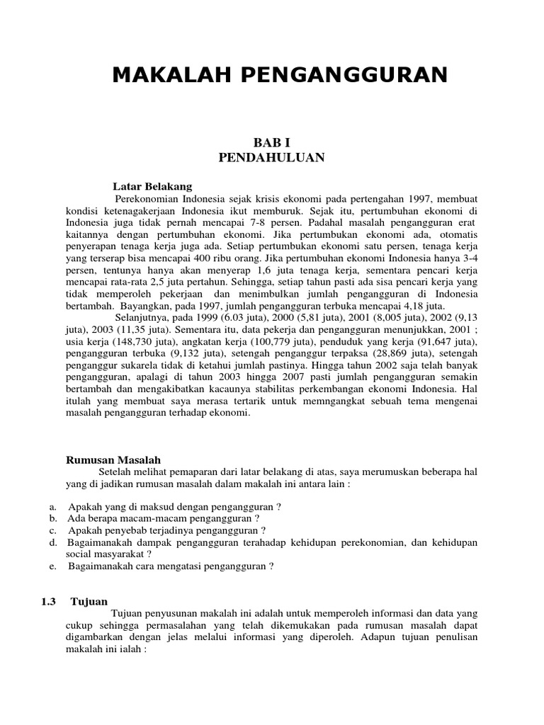DOC) CONTOH MAKALAH TENTANG PENGANGGURAN DAN KEMISKINAN DI INDONESIA | Ari Khomarudin - Academia.edu