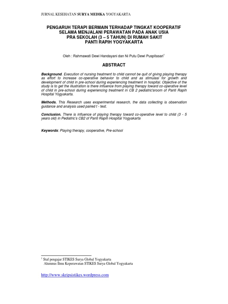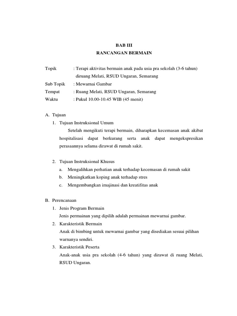 DOC) SATUAN ACARA BERMAIN (SAB) PADA ANAK TERAPI BERMAIN PADA ANAK di RUANG IBU DAN ANAK RUMAH SAKIT BAPTIS BATU MALANG | Niken Ashari - Academia.edu