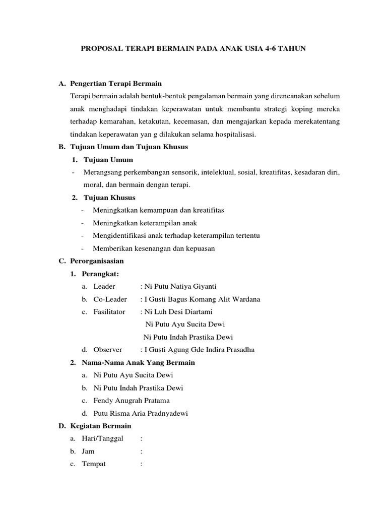 Proposal Pelaksanaan Program Terapi Bermain - [DOCX Document]