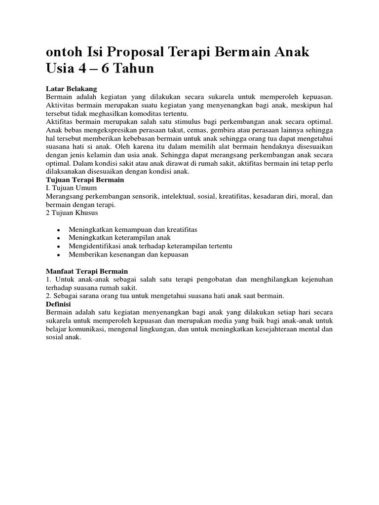 Ontoh Isi Proposal Terapi Bermain Anak Usia 4