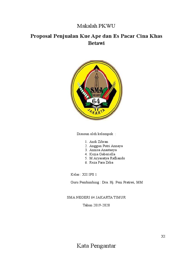 proposal prakarya.docx - PROPOSAL USAHA RN Cake \u201cKUE PANCONG\u201d Nama Nikita Astami Raditya Farisi Kelas XI MIPA 4 SMAN 6 JAKARTA TAHUN AJARAN | Course Hero