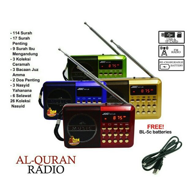 Radio JOC Rechargeable Usb, Microsd , mp3. FM Radio+Al Quran | Shopee Malaysia