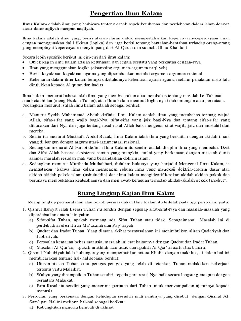 DOC) BAB I PENGERTIAN ILMU KALAM | Maf Tukhi - Academia.edu