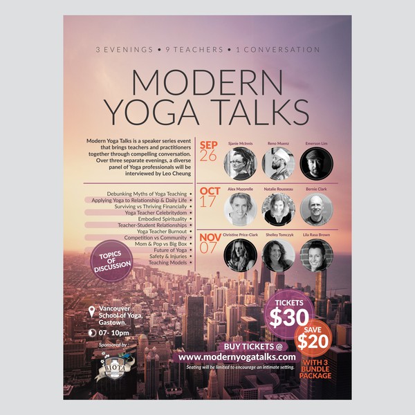 Create a poster design for modern yoga talks speakers event …
