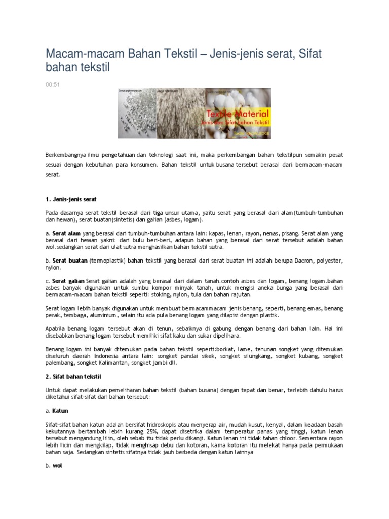DOC) JENIS DAN SIFAT BAHAN TEKSTIL | Xcnation 1245 - Academia.edu