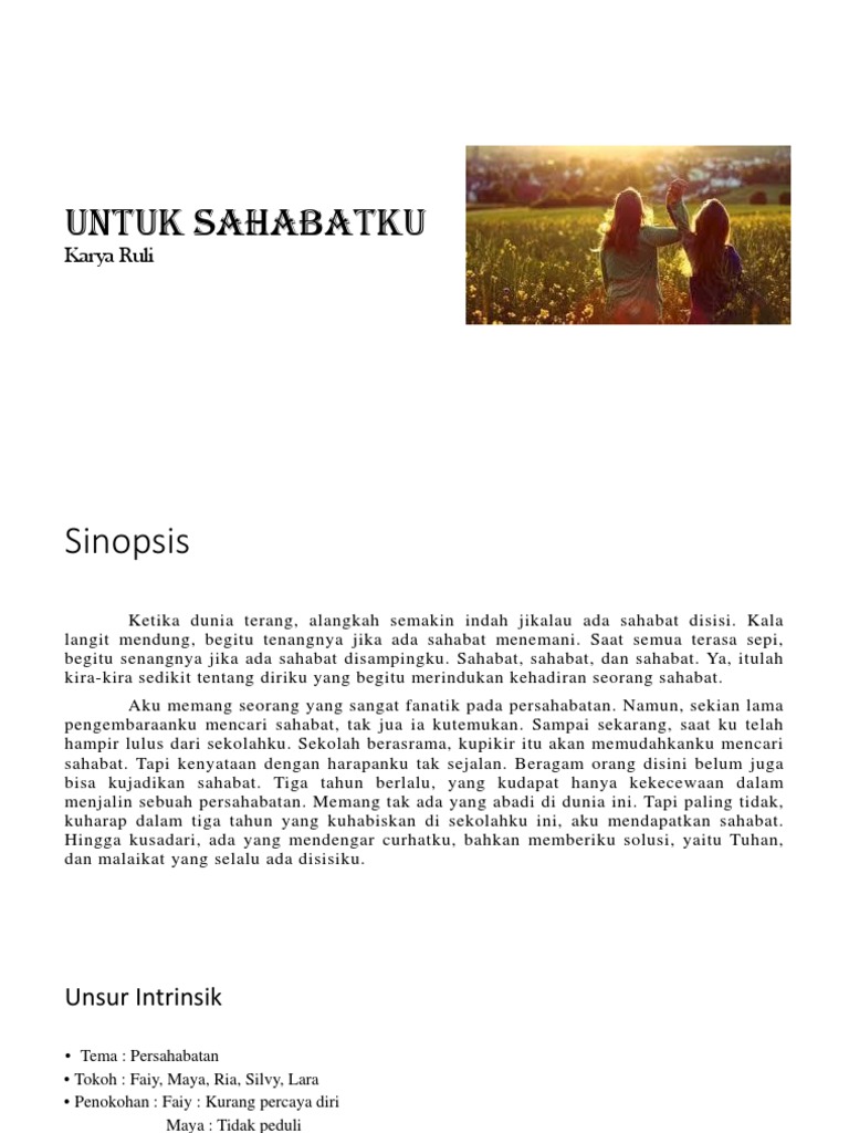 Contoh Cerpen Persahabatan Dan Unsur Intrinsik