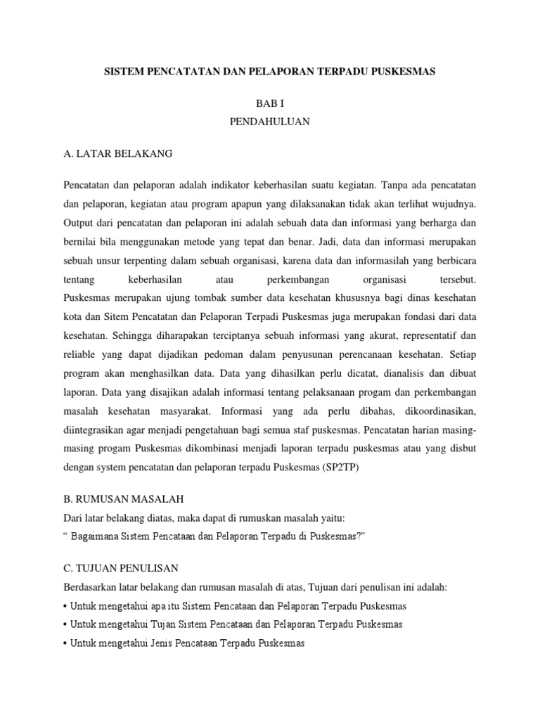 SISTEM PENCATATAN DAN PELAPORAN TERPADU PUSKESMAS ( SP2TP ) Dr. H. Fahrurazi, M. Kes - PDF Free Download