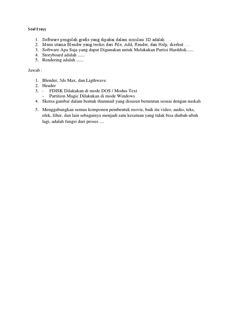 Contoh Soal Dan Jawaban Animasi 3d Essay - Guru Ilmu Sosial