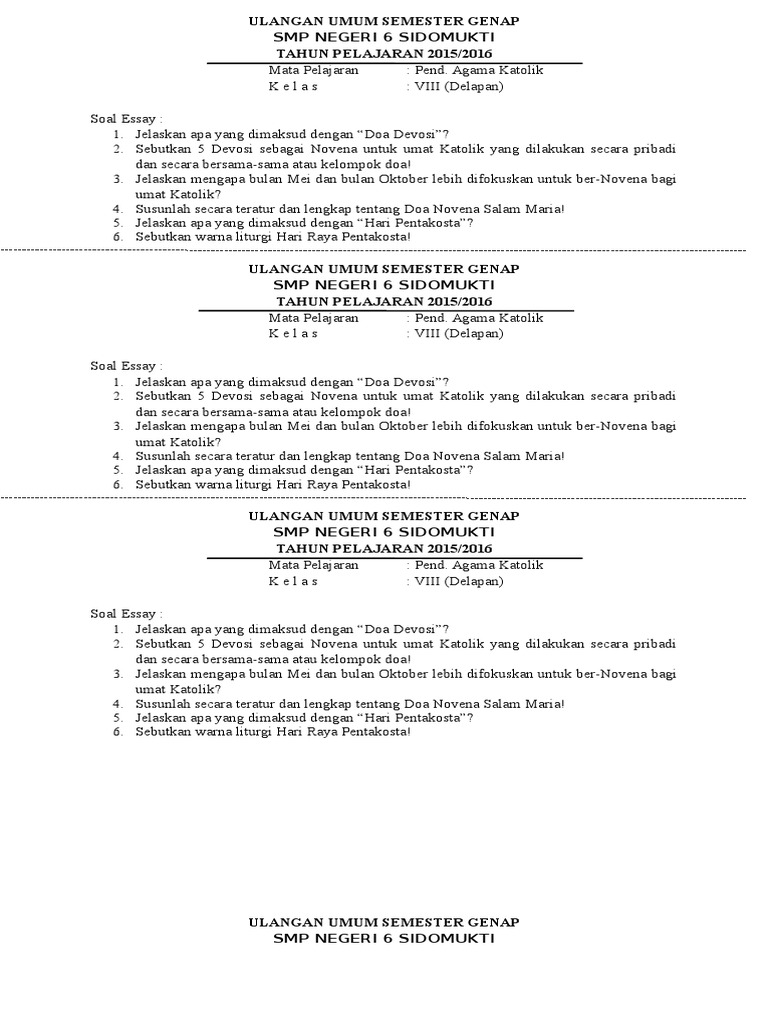 Soal Agama Katolik Smp Kelas 7 - Rismax