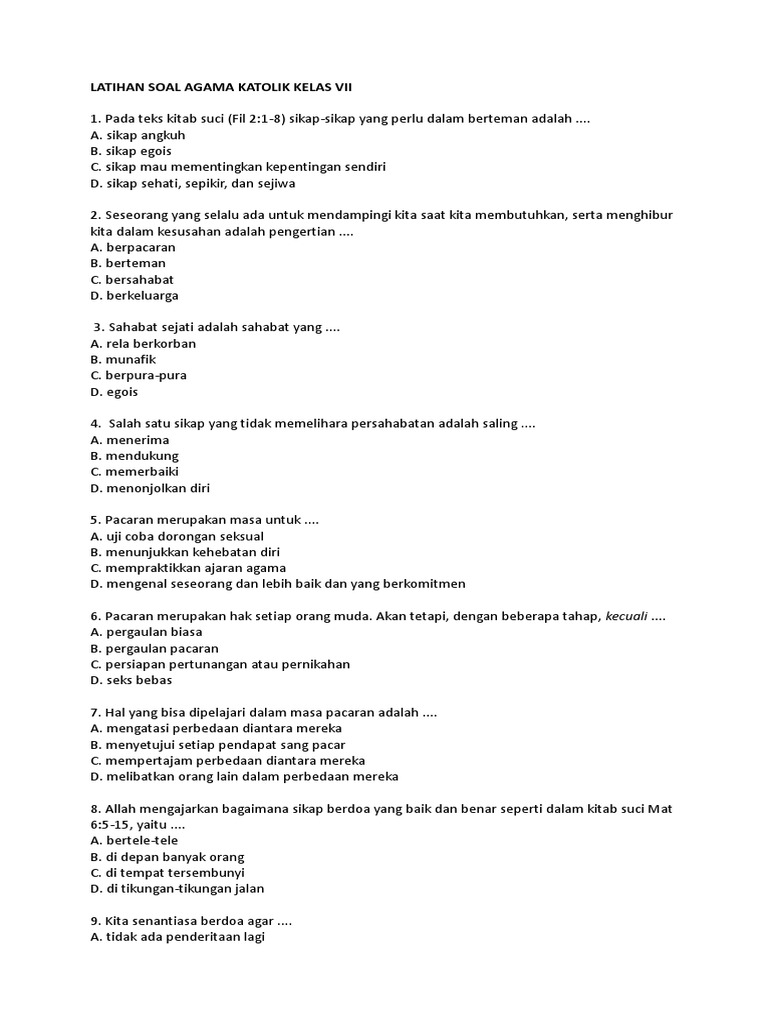 Soal Agama Katolik Kelas 7 Kurikulum 2013 - Guru Ilmu Sosial