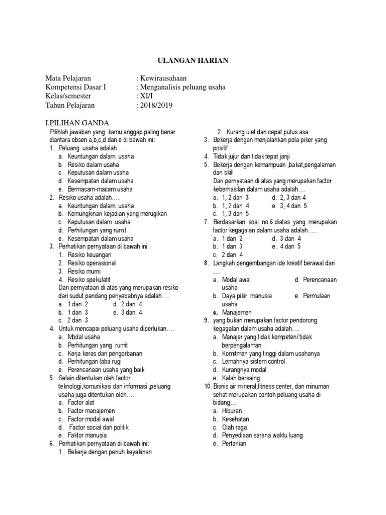 20+ Contoh Soal Kewirausahaan Kelas Xi Peluang Usaha - Kumpulan …