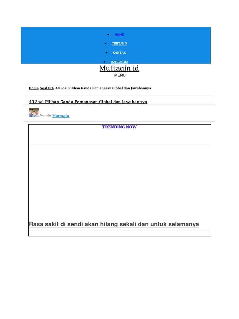 40 Soal Pilihan Ganda Pemanasan Global dan Jawabannya - Muttaqin id