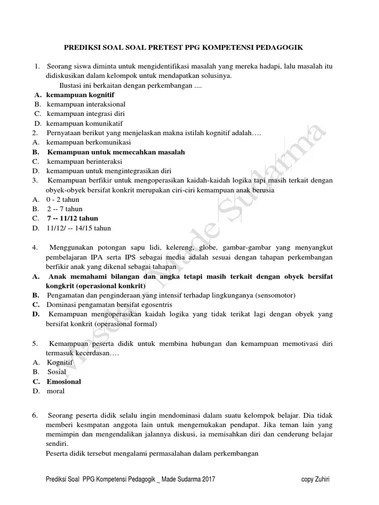 Prediksi Soal Soal Pretest Ppg Kompetensi Pedagogik2