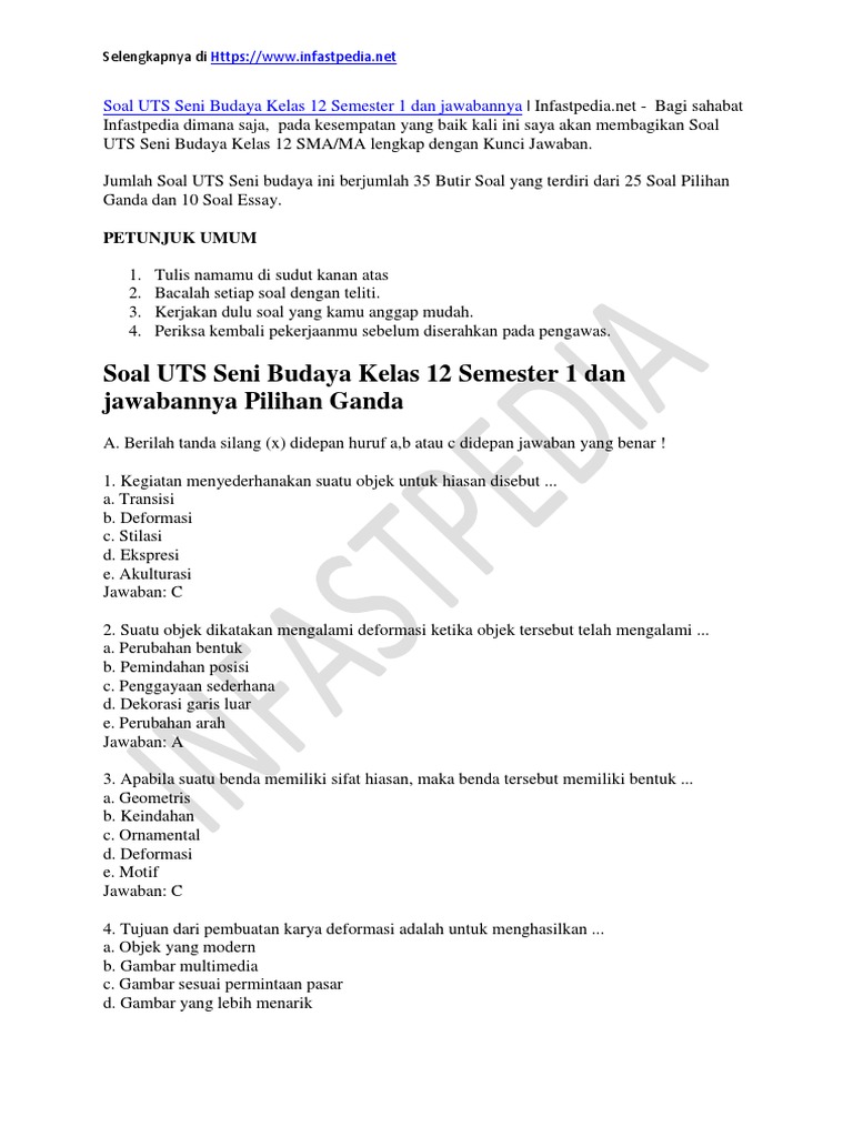 Soal Essay Seni Budaya Kelas 12 Semester 1 Dan Jawabannya - Guru Ilmu Sosial