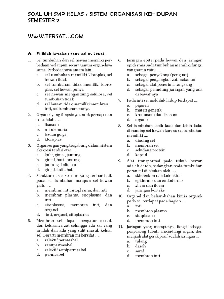 20 Soal dan Jawaban Sistem Organisasi Kehidupan Kelas 7 Kurikulum …