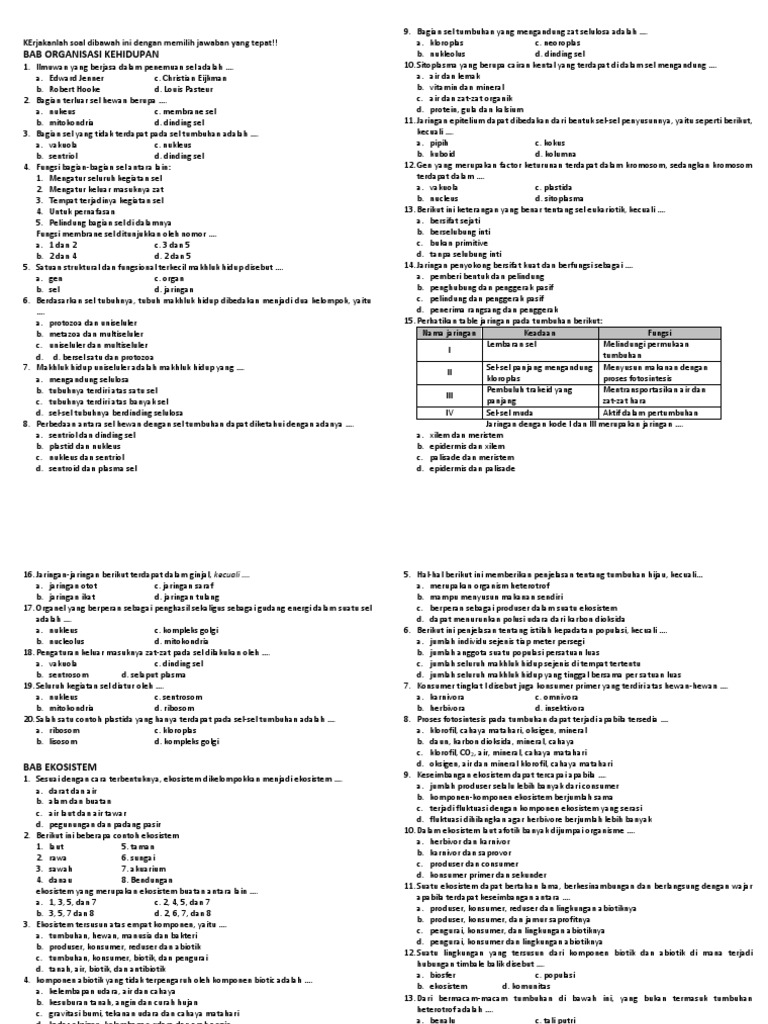 latihan soal ipa kelas vii “sistem organisasi kehidupan”