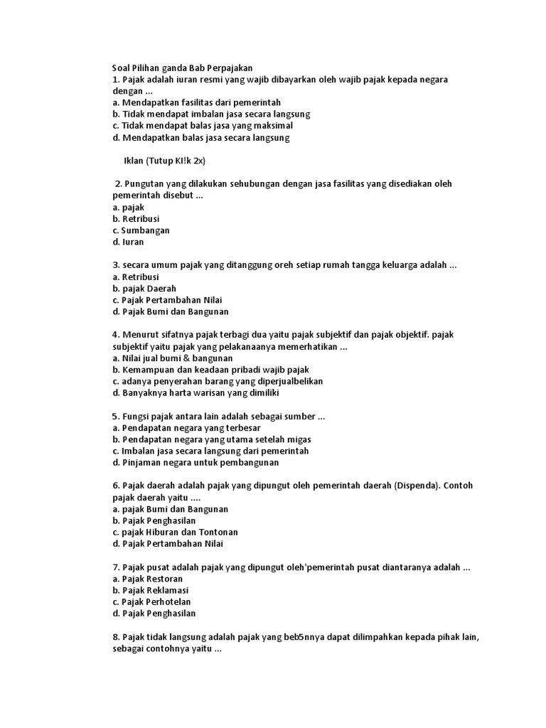 Soal Pg Pajak Dan Jawabannya - Guru Ilmu Sosial