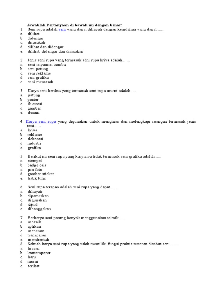 Contoh Soal Seni Budaya Kelas 10 Semester 2 Kurikulum 2013 - Inputsoal.com