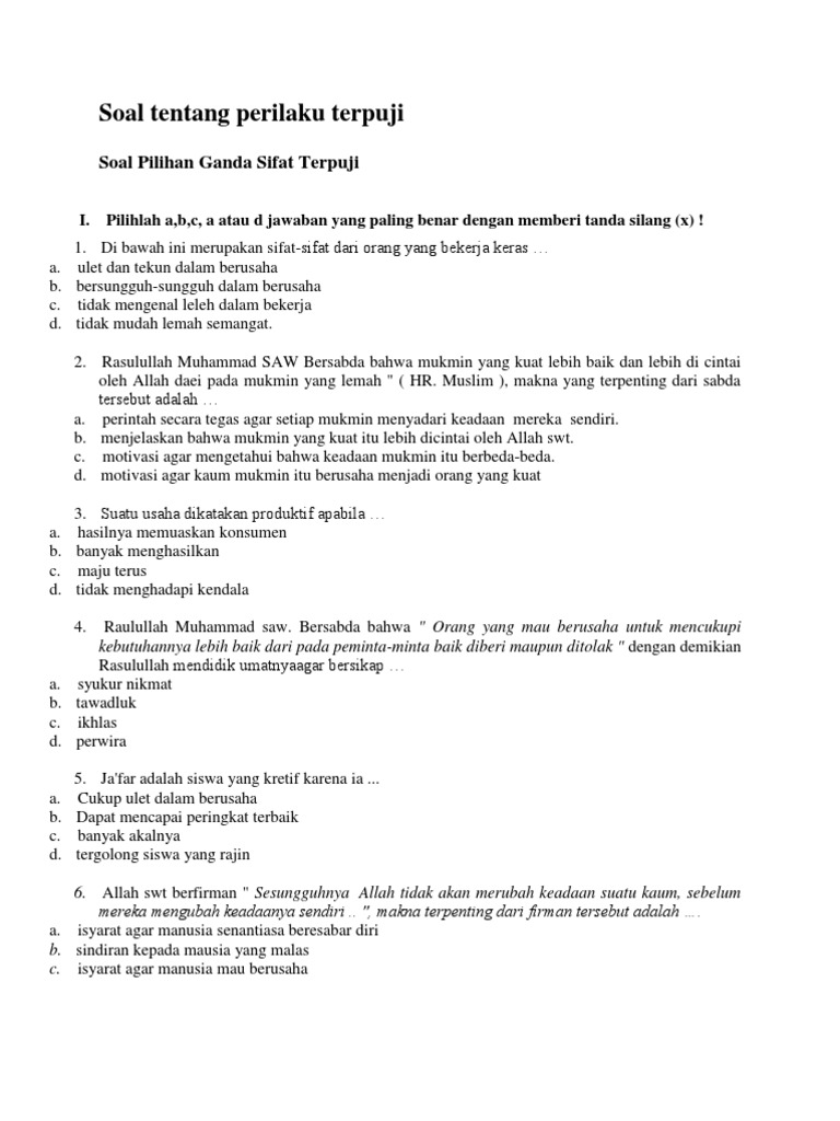 Best Contoh Soal Dan Jawaban Tentang Perilaku Terpuji