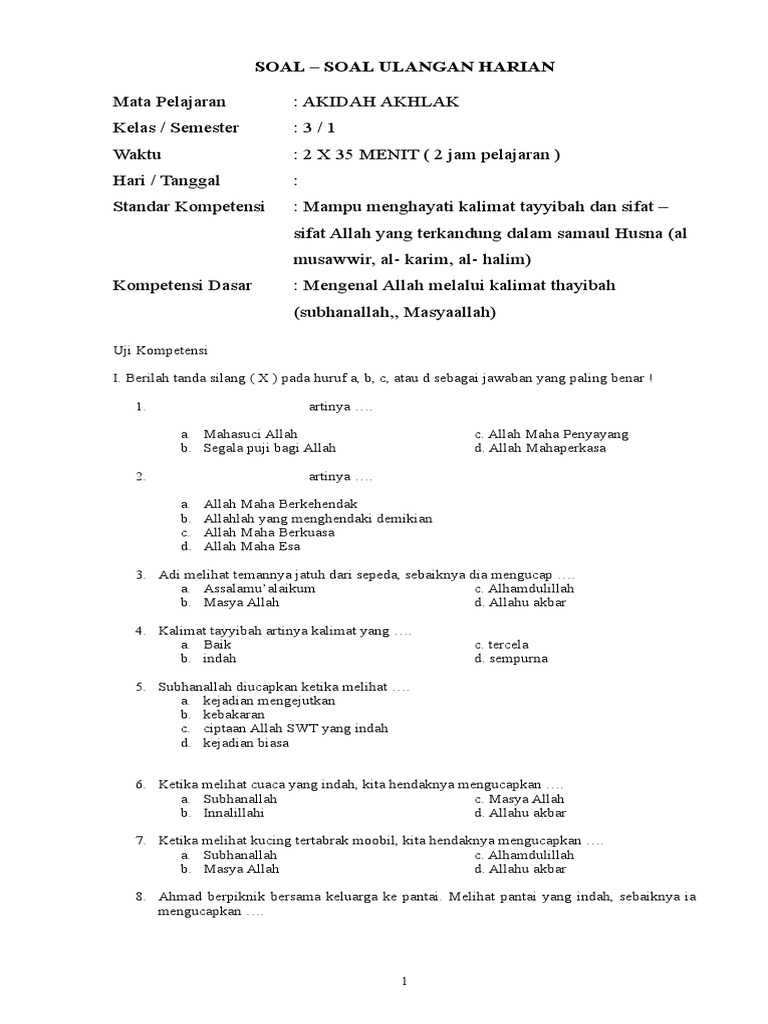 PDF) Kisi-Kisi Akidah Akhlak 789 | puji hari - Academia.edu