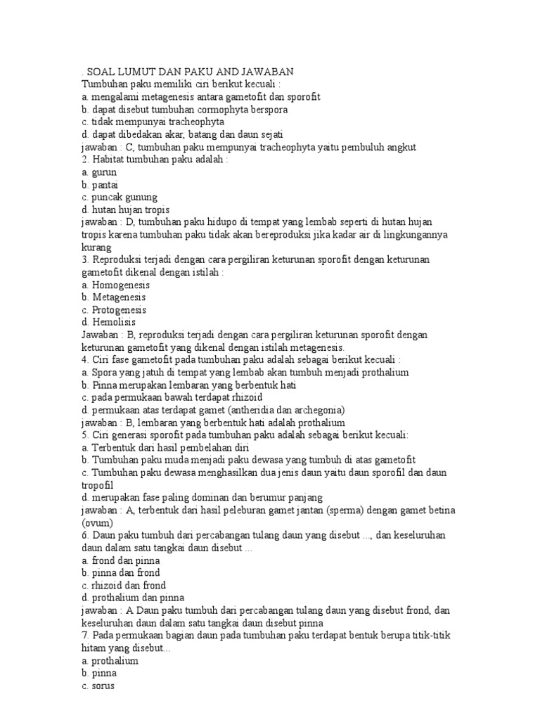 Soal Pilihan Ganda Tumbuhan LUMUT dan PAKU + Jawaban - Portal Guru …