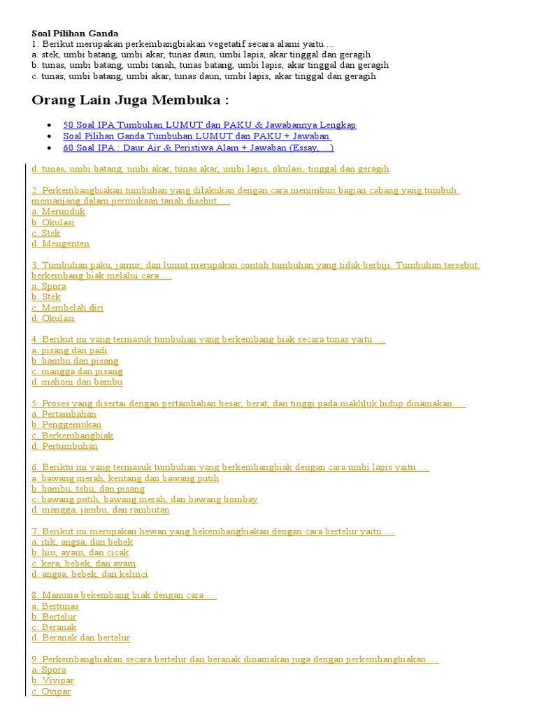 contoh soal ipa materi perkembang biakan 2
