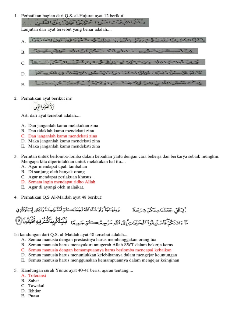 Contoh Soal dan Kunci Jawaban USBN Pendidikan Agama Islam SMA-SMK …