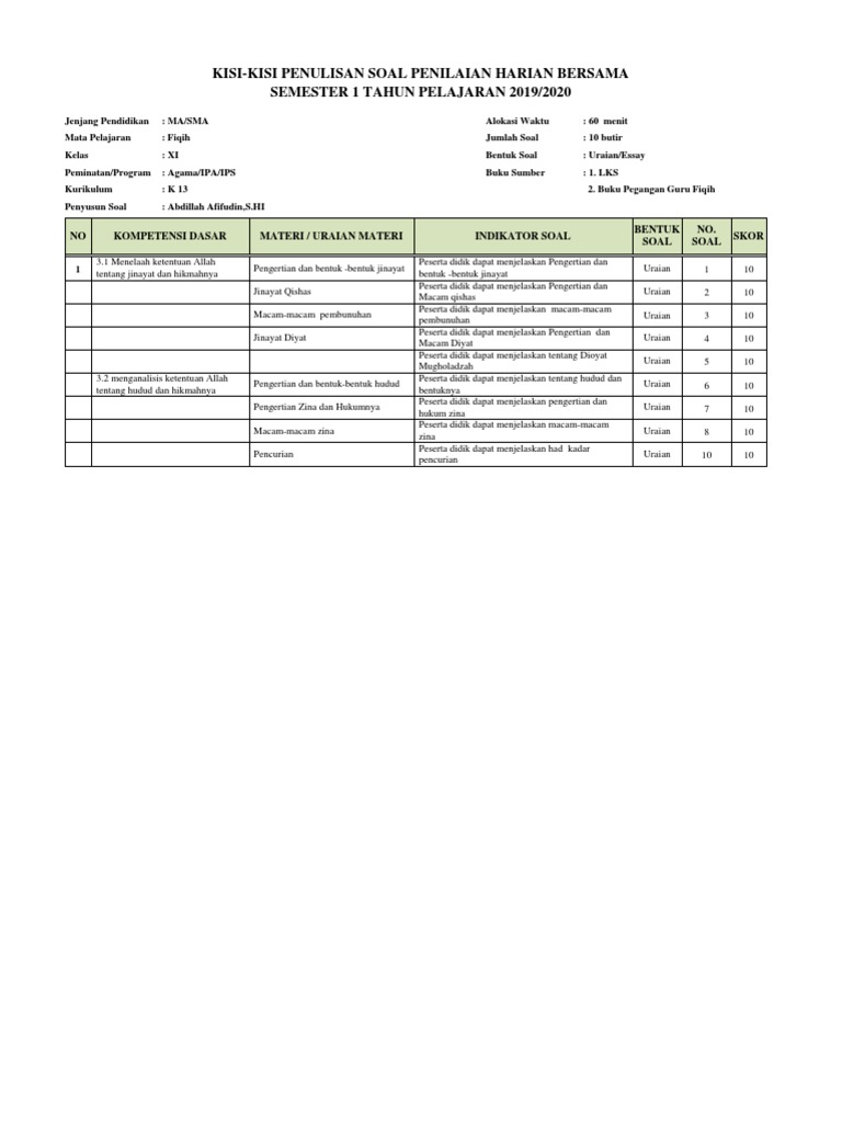 kisi kisi soal fiqih ma kelas x semester 1 18 - Modus Operandi