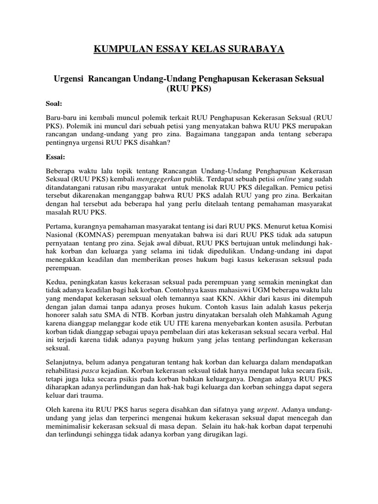 Kumpulan Essay Kelas Surabaya: Urgensi Rancangan Undang …