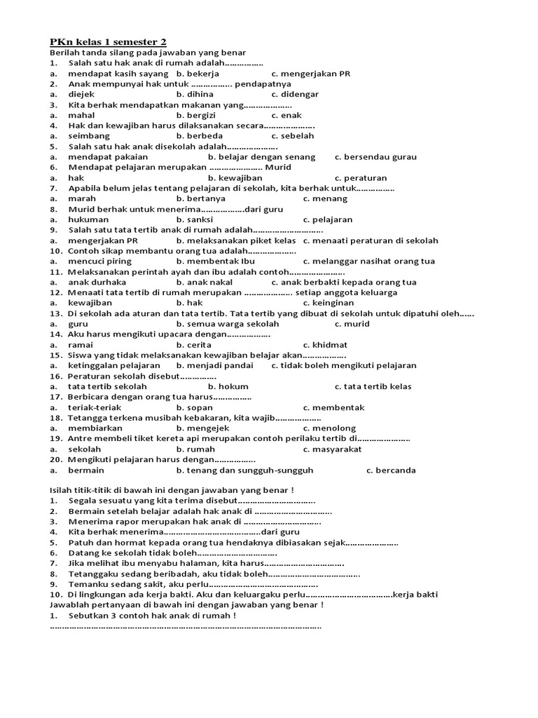 Soal Pkn Kelas 6 Beserta Jawabannya Guru Galeri – cute766